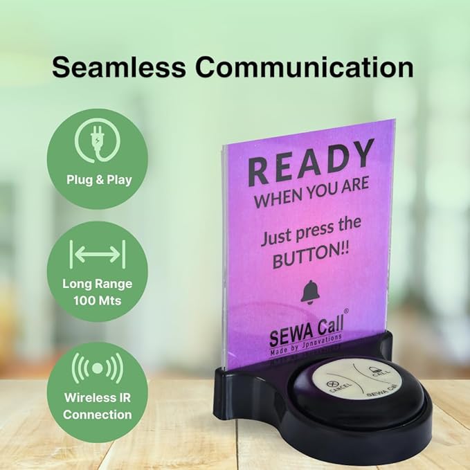 Instant Wireless Bell for Office & Café Staff – Quick & Reliable ( Pack of 15 waterproof buttons and 1 display )
