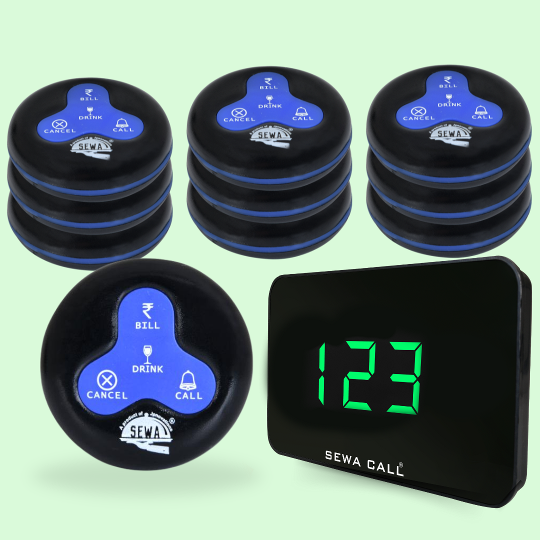 Waiter Calling System ( Pack of 1 Display and 10 Multi Key Waterproof Buttons)